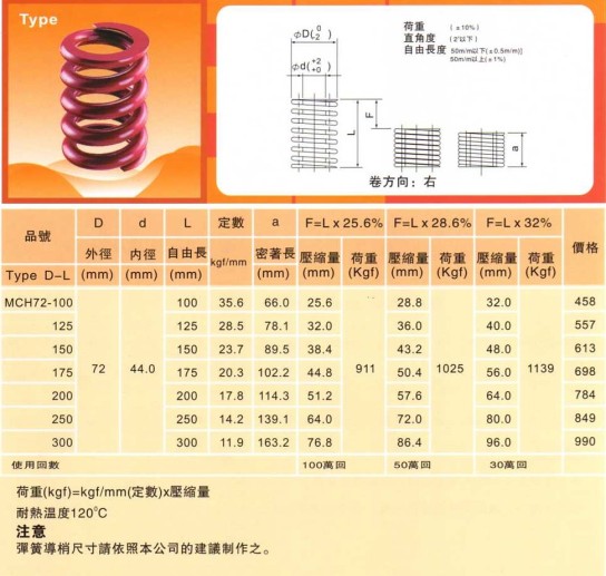 MCH高荷重彈簧(紅色)    首頁 > 產品展示 > 彈簧系列